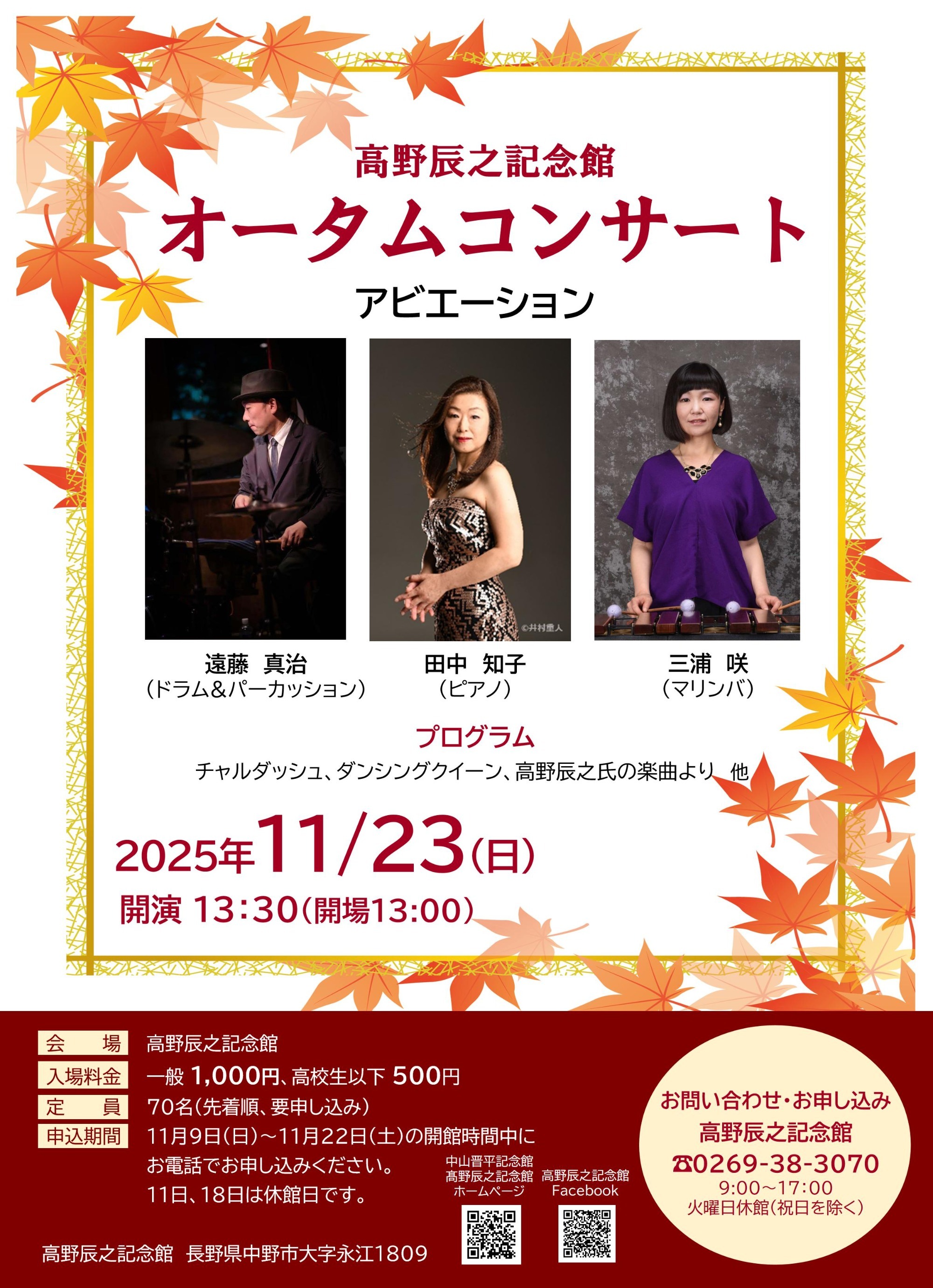 2025年11月23日(日)に「高野辰之記念館オータムコンサート」が開催されます。